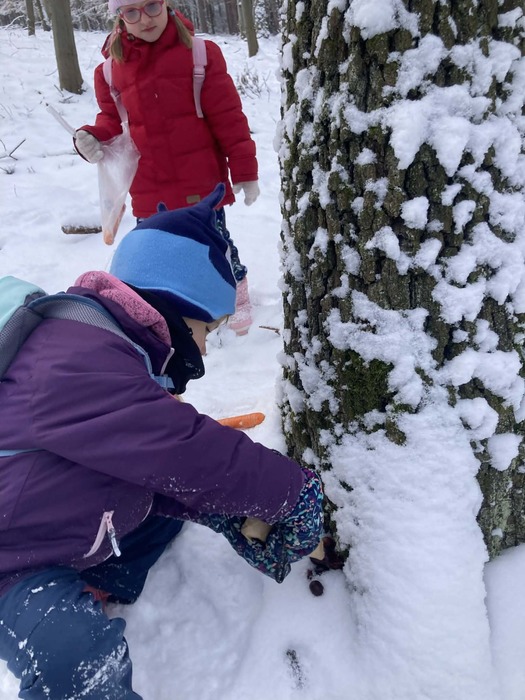 Procházku jsme si moc užili, nadýchali se čerstvého vzduchu a cestou pozorovali stopy ve sněhu i tiché lesní zákoutí.