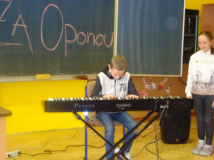 Žáci i pedagogové naší školy si užili hudební projekt Za oponou s Dominikem Fajkusem. Populární opavský klavírista a skladatel přijel v den pololetního vysvědčení a měli jsme ho tudíž tak trochu za odměnu za naši pětiměsíční práci. Žáci se seznámili s hudební historií a známými skladateli od baroka až po současnost a rovněž se aktivně zapojili do samotné hudební produkce. Ti nejodvážnější dokonce usedli za klavír. Naše děti mají přehled, co se týče známých skladeb vážné hudby, lidových písní i hudby filmové, či herních melodií. Důkazem, že se vystoupení líbilo, je i to, že během hodinového programu zněla nejen hudba, ale často také smích.