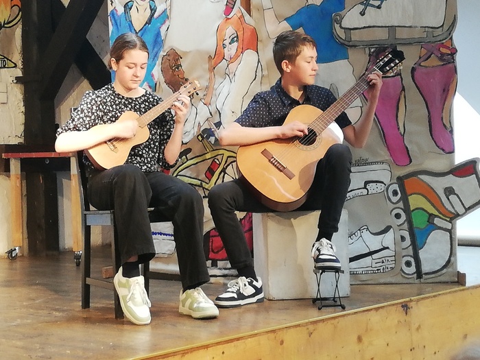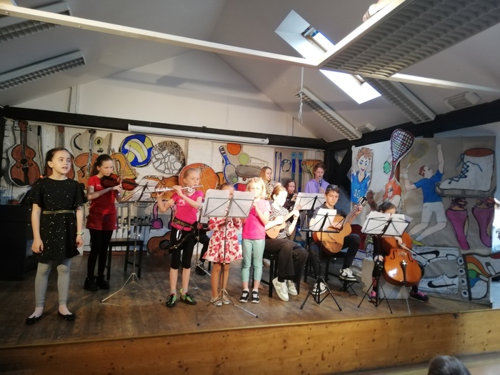 - května jsme byli pozváni do ZUŠ v Krnově. Tam učitelé a jejich žáci představili předškoláčkům a prvňáčkům obory, které se na ZUŠ vyučují. Při divadelním představení plných písniček se děti seznámily s různými hudebními nástroji, zjistily, že v „hudebce“ se mohou učit nejen hrát na vybraný nástroj, ale i zpívat, tančit, malovat nebo třeba hrát divadlo.